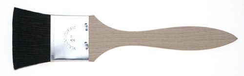 Rindshaarpinsel Sorte 135 Gr. 1 Zoll. Sichtbare Borstenlänge ca. 29 mm, schwarzes Rindshaar, kurzer roher Holzstiel. Das Artikelbild zeigt einen Pinsel in der Größe 2 Zoll.