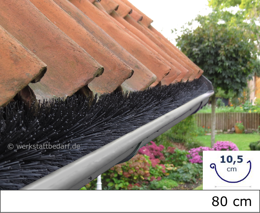 Die Bürste erfüllt ihre Wirkung nur zuverlässig, wenn sie dem Durchmesser Ihrer Dachrinne angepasst ist. Nur so verhindern Sie, dass sie vom Wind herausgeweht werden kann.