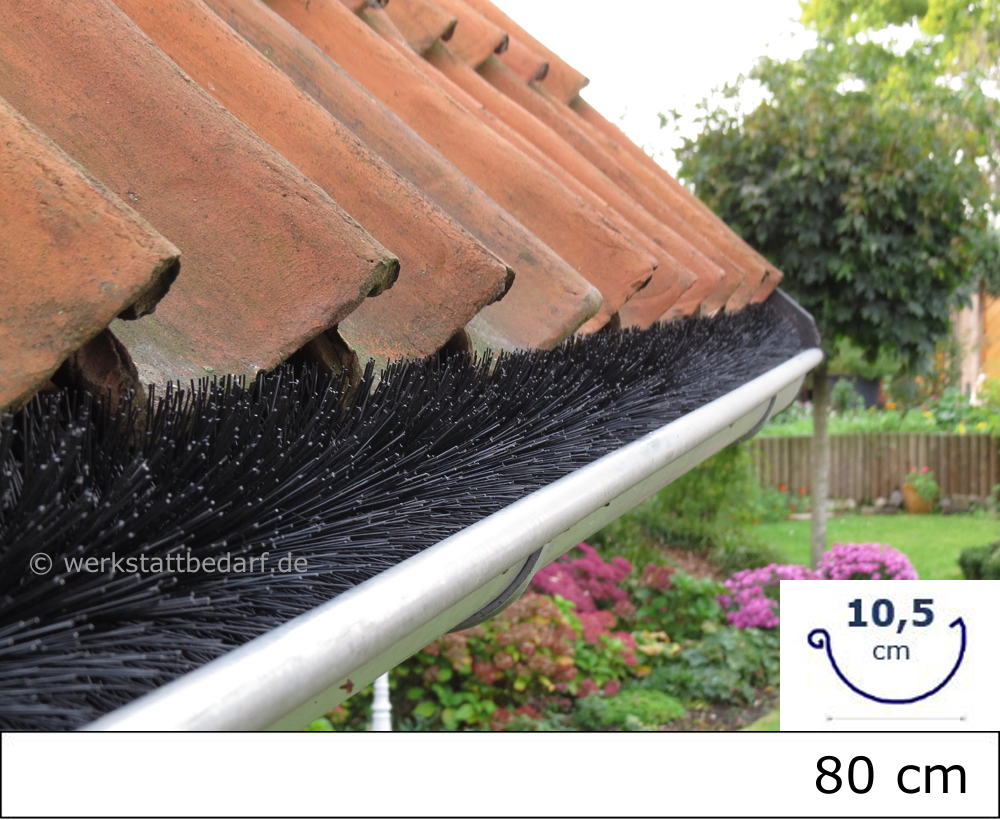 Die Bürste verhindert das Verstopfen der Dachrinne durch Laub. Feuchtes Laub wird zunächst vom Wind getrocknet und dann weggeweht. Außerdem gibt es keine Möglichkeit für Marder, Eichhörnchen oder Vögel, unter die Dachpfannen einzudringen.