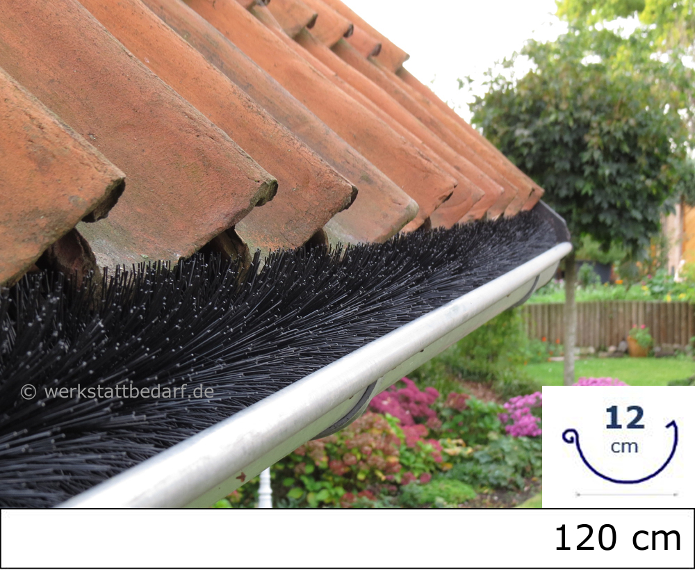 Die Bürste erfüllt ihre Wirkung nur zuverlässig, wenn sie dem Durchmesser Ihrer Dachrinne angepasst ist. Nur so verhindern Sie, dass sie vom Wind herausgeweht werden kann.