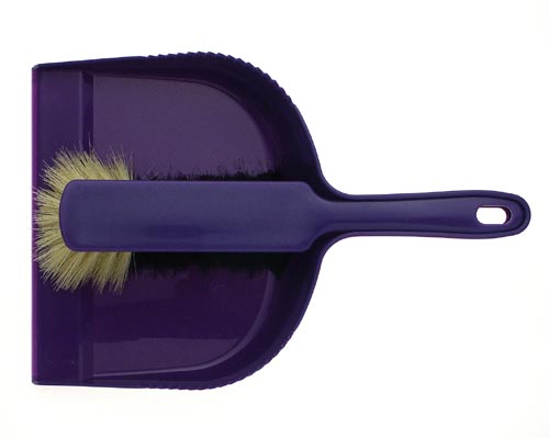 Kehrschaufel mit Handfeger. Schaufel mit Kunsthaar-Handfeger. Handfeger ca. 28 cm lang, 3-5-reihig, sichtbare Borstenlänge ca. 50 mm. Farblich sortiert.